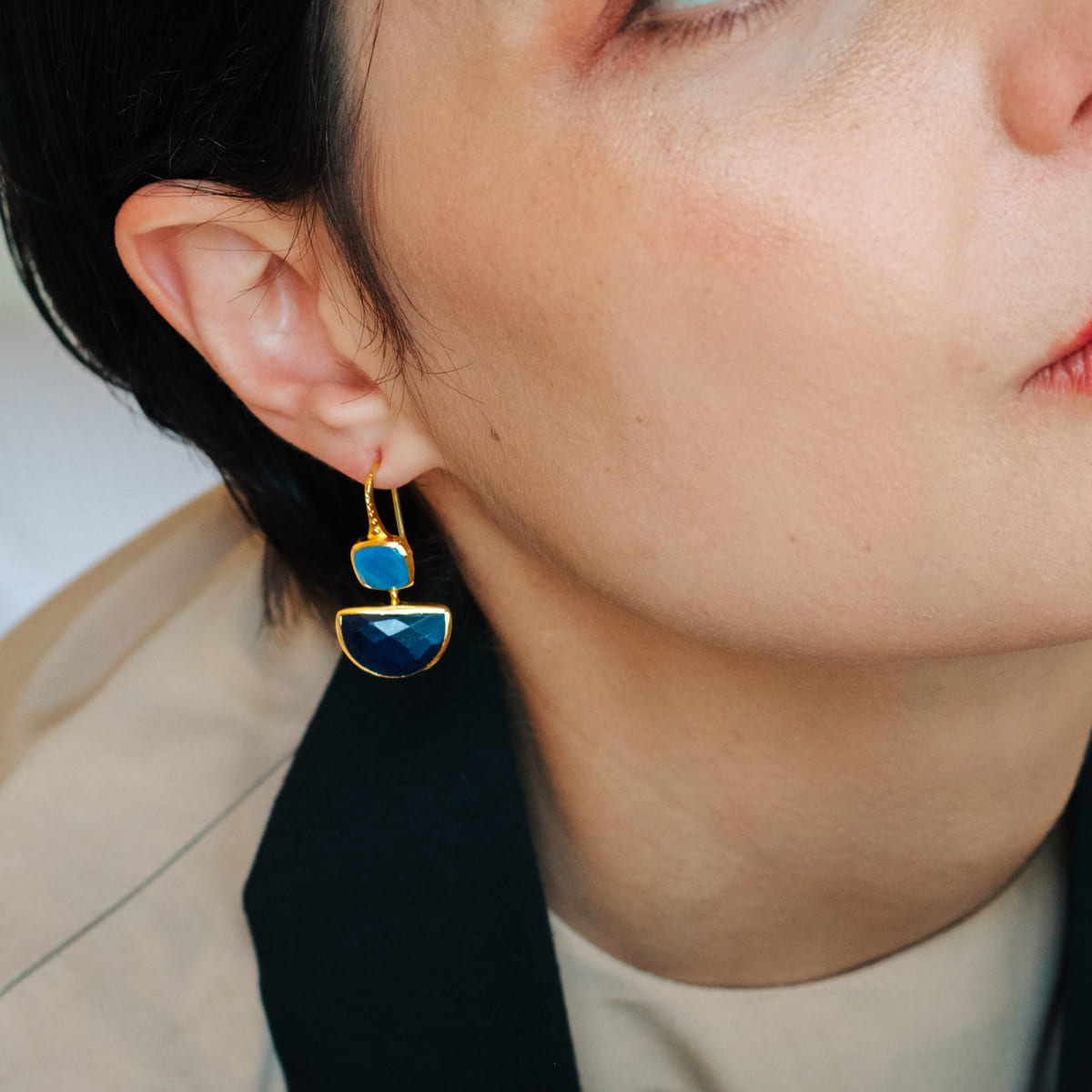 ATHENA ‘Charis’ダブルストーンハーフムーンドロップピアス : ブルーカルセドニー&ブルージェイド