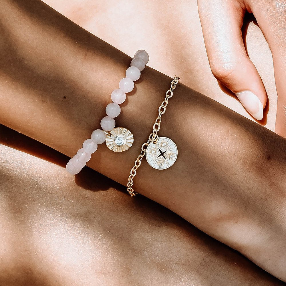 夜の星空をイメージしたコインチャームのブレスレット。きらめくキュービックジルコニアがアクセントになっています。