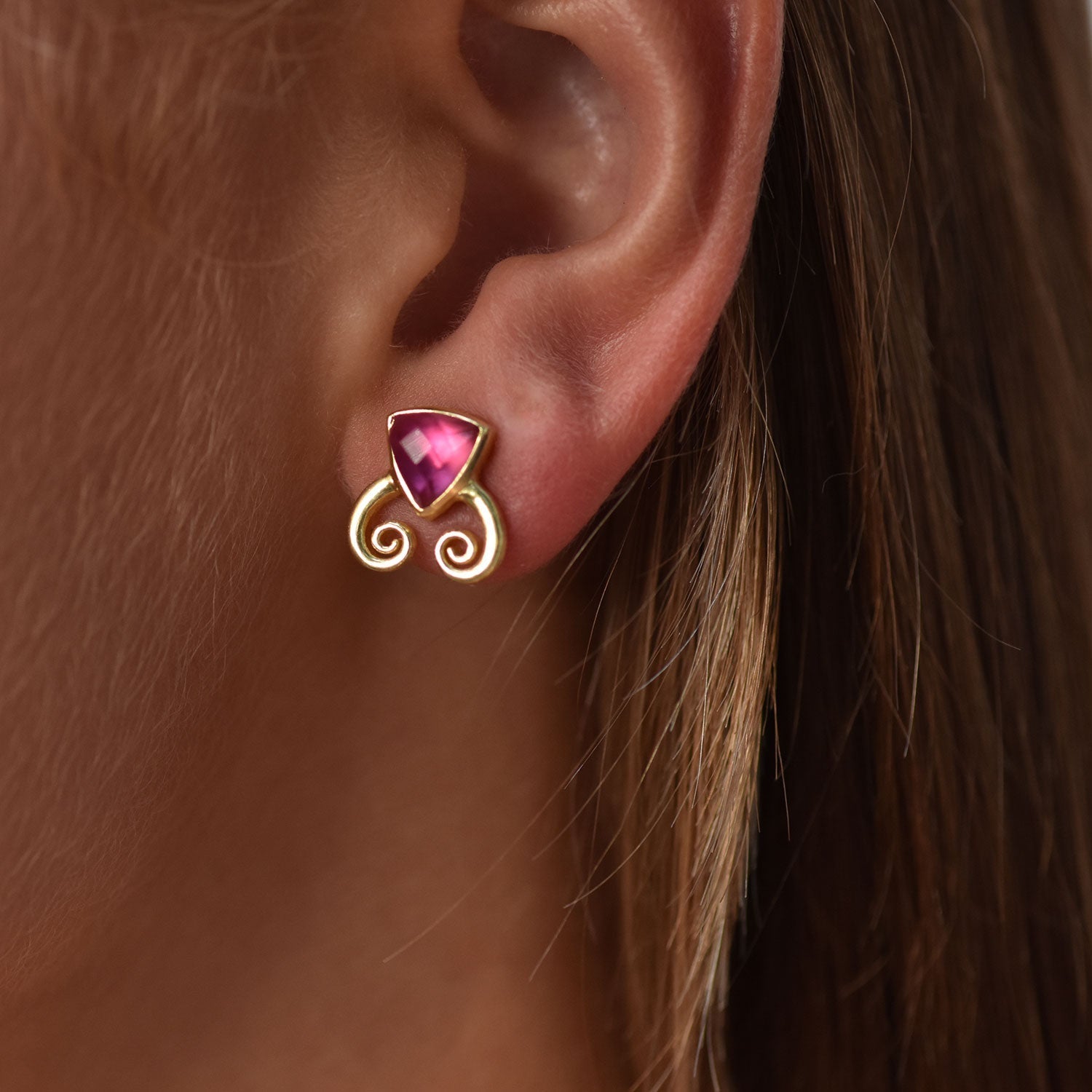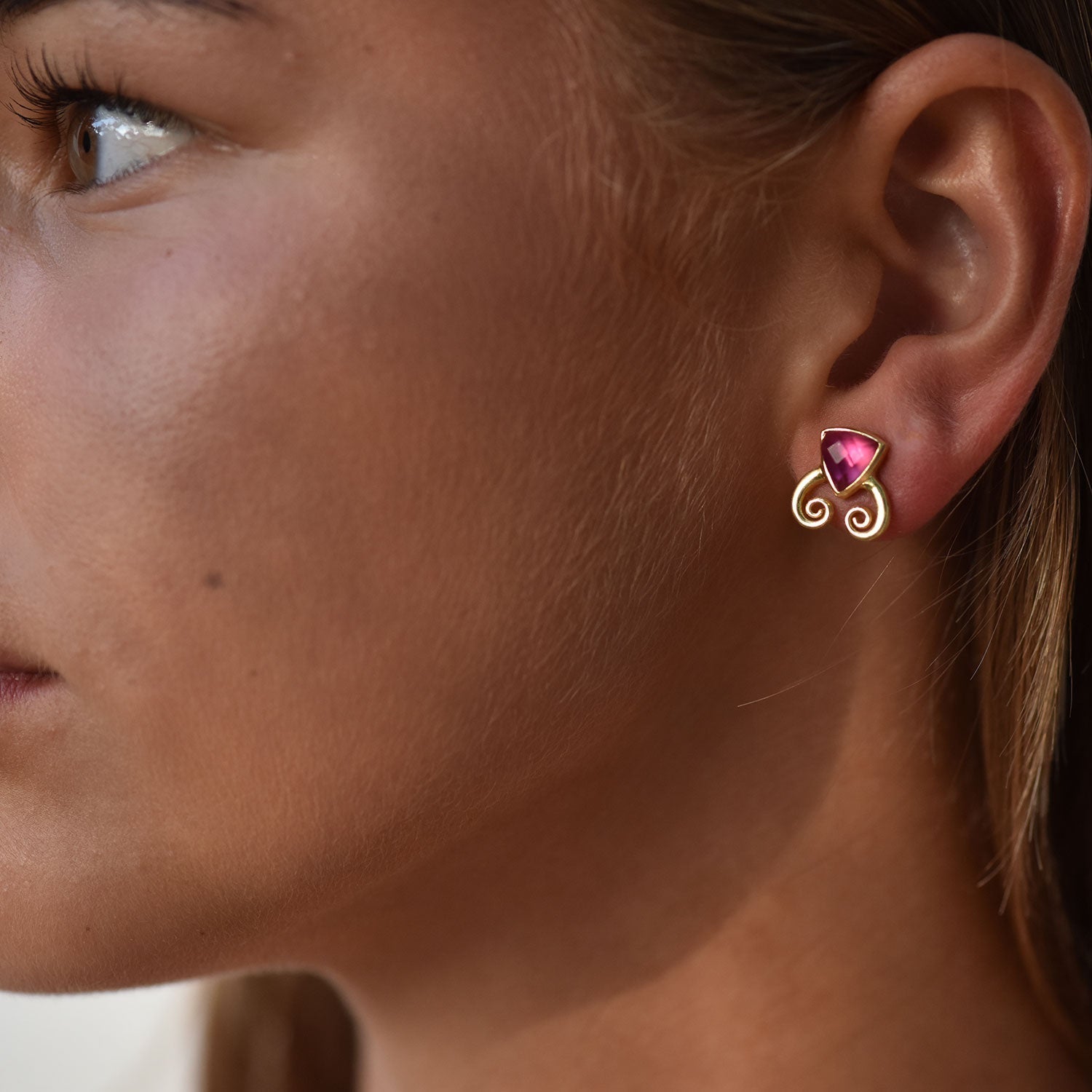 • トリリオンカットのダブレットストーンをあしらった、珍しいスクロールスタッドピアスです。