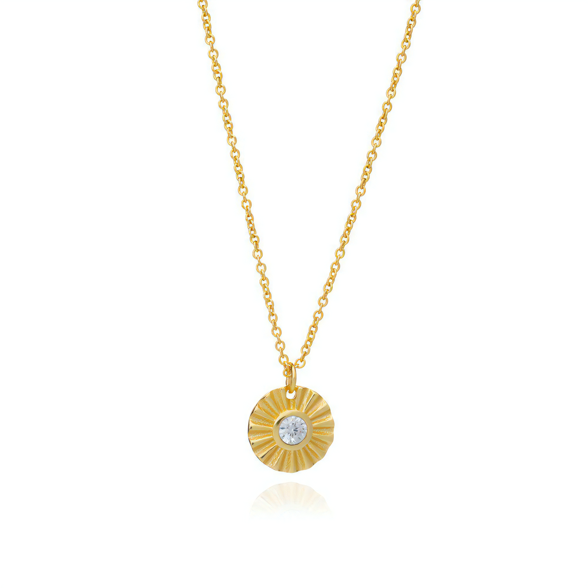 夜の星空をイメージしたコインチャームのネックレス。きらめくキュービックジルコニアがアクセントになっています。
