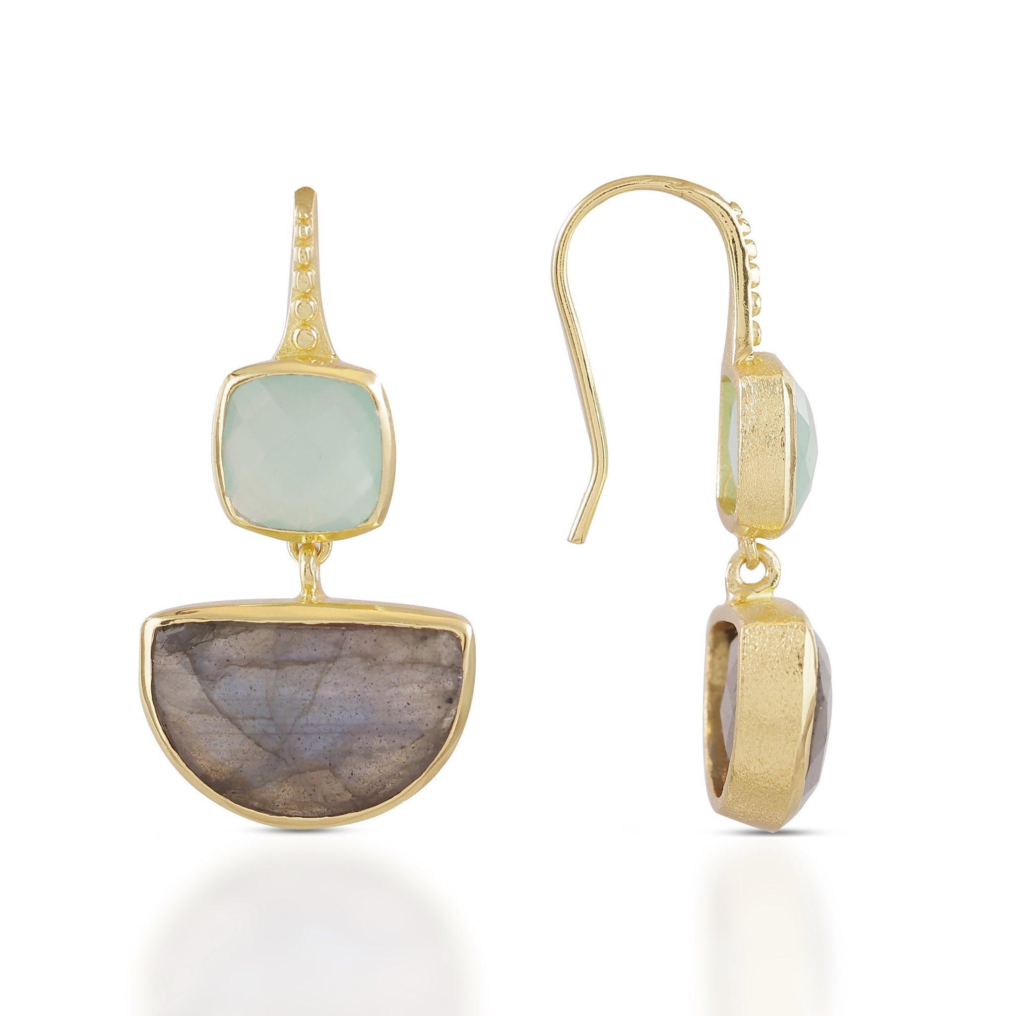 ATHENA ‘Charis’ダブルストーンハーフムーンドロップピアス : アクアカルセドニー&ラブラドライト
