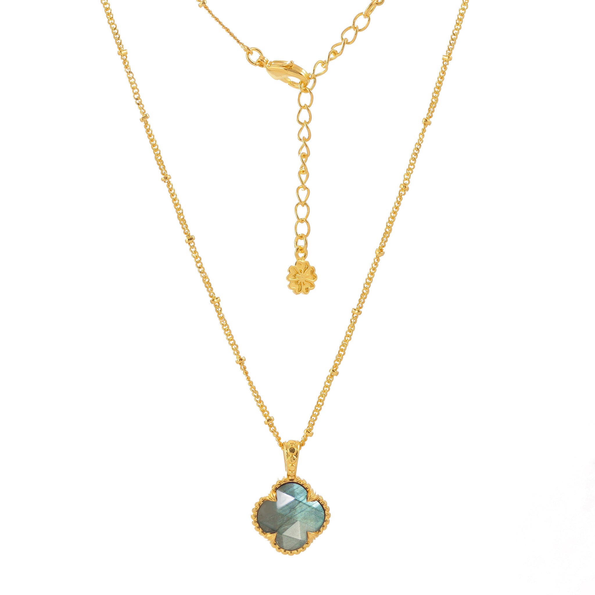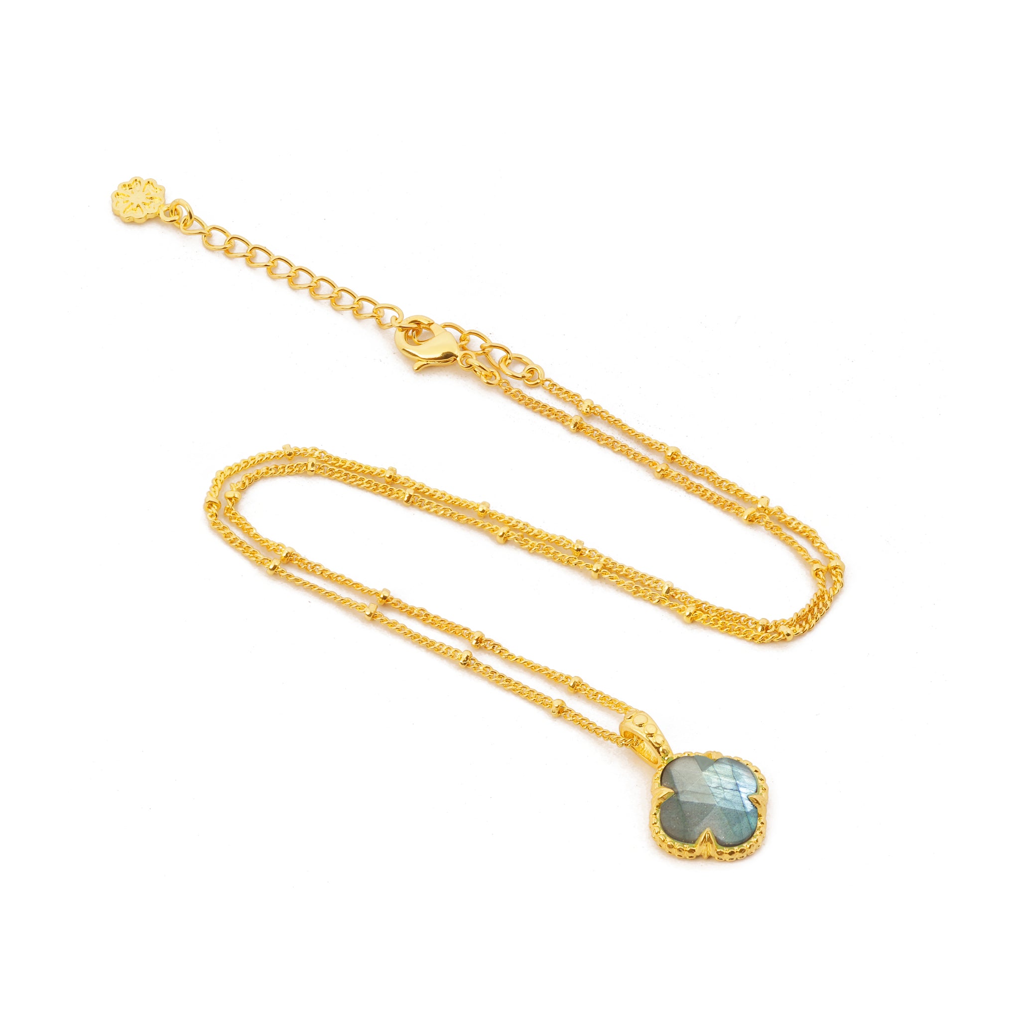 かわいらしいクローバー型のぷっくりとした天然石が目を惹くデザイン。華奢なチェーンが女性らしさを引き立てます。